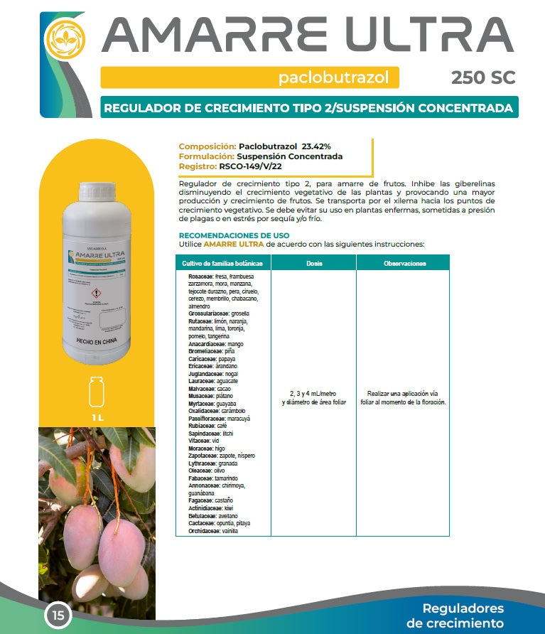 Composición: Paclobutrazol con 250 g/L Familia química: Triazoles Formulación: Suspensión concentrada Registro: RSCO-149/V/22