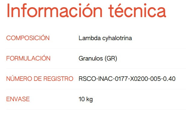 Trika 1 es un insecticida para el control de las plagas de suelo que atacan al cultivo de maíz. Formulado como microgránulo, está compuesto de Lambda cyhalotrina a 0.49 a fijado en una base órgano-mineral (UMOSLOW). Esta base contiene Nitrógeno, fósforo (P2O5), Materia orgánica y extractos húmicos, que favorecen un mayor desarrollo del sistema radicular, obteniéndose una mejor implantación del cultivo en su fase initial y un mayor número de plantas viables